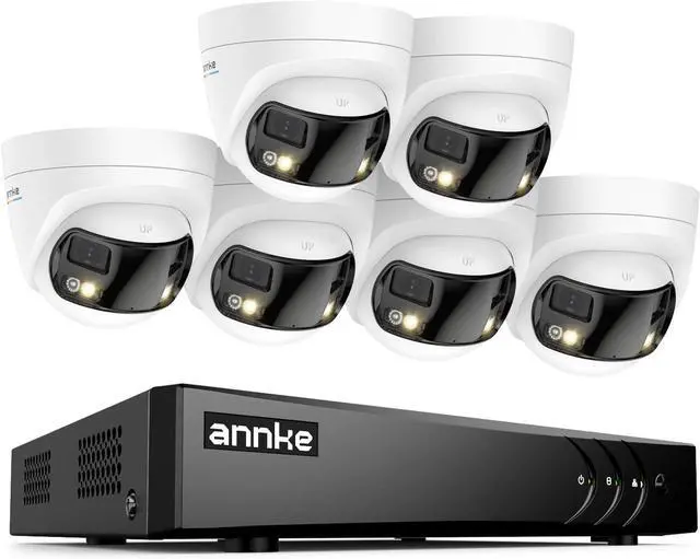 ANNKE 3K Lite H.265+ Security DVR Recorder with 6Pcs 3K Analog Dual-Lens Security Cameras, Smart Dual Light, 130dB, Remote Access, One-Way Audio, IP67, 180°Wide Angle(No Hard Drive)