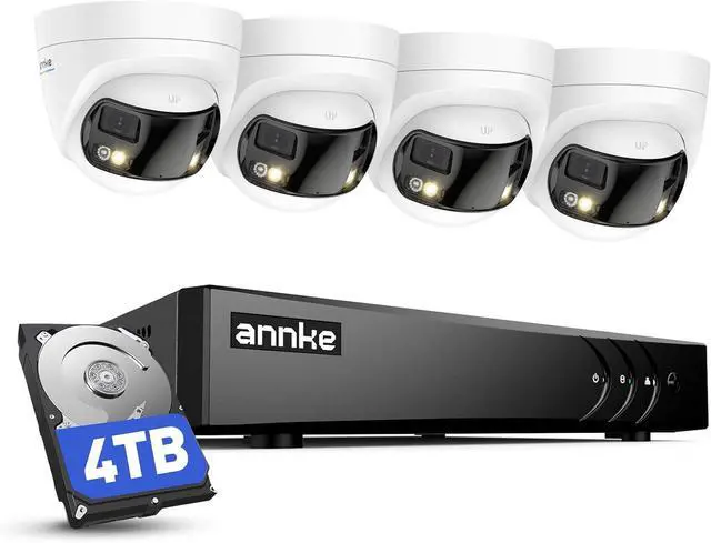 ANNKE 3K Lite H.265+ Security DVR Recorder with 4Pcs 3K Analog Dual-Lens Security Cameras, Smart Dual Light, 130dB, Remote Access, One-Way Audio, IP67, 180°Wide Angle, 4TB