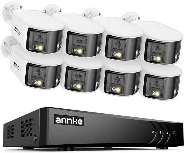 ANNKE 3K Lite H.265+ Security DVR Recorder with 8Pcs 3K Analog Dual-Lens Security Cameras, Smart Dual Light, 130dB, 3D DNR, One-Way Audio, IP67, 180°Wide Angle(No Hard Drive)