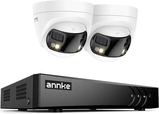 ANNKE 3K Lite H.265+ Security DVR Recorder with 2Pcs 3K Analog Dual-Lens Security Cameras, Smart Dual Light, 130dB, Remote Access, One-Way Audio, IP67, 180°Wide Angle(No Hard Drive)