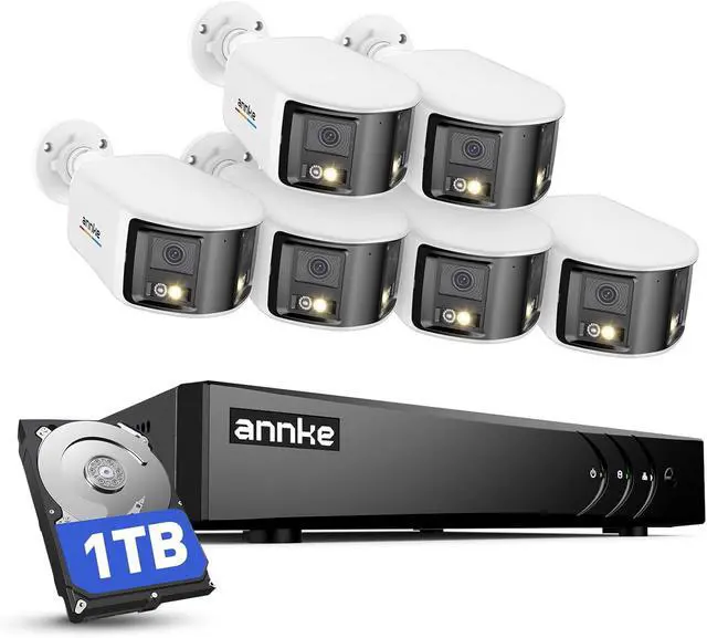 ANNKE 3K Lite 8 Channel Hybrid 5-in-1 DVR Recorder with 6 Pack 5MP Analog Dual-Lens Security Camera, 180°Wide Angle, Smart Dual Light, 1TB