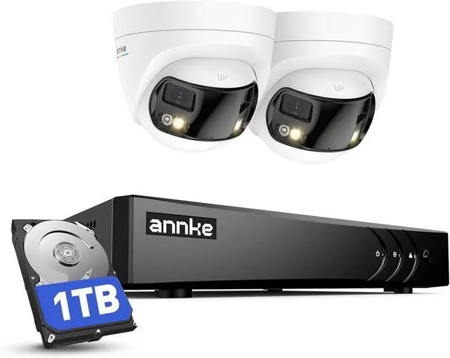 ANNKE 3K Lite 8 Channel Hybrid 5-in-1 DVR Recorder with 2 Pack 5MP Analog Dual-Lens Security Camera, 180°Wide Angle, Smart Dual Light, One-Way Audio, IP67, 1TB
