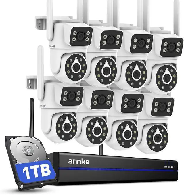 ANNKE 2.5K Dual-Lens Security Camera System-16CH Expandable 4K Security NVR, 2.4G/5G Dual-Band Wireless NVR, 8Pcs 2.5K Outdoor Cameras, 2-Way Voice, IP66 Weatherproof, 24/7 Protection, 1TB