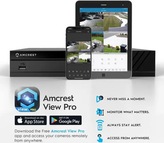 Record in Widescreen, Quick Access QR Code Remote Viewing on iPhone, iPad, and Android (w/ included Amcrest View app)