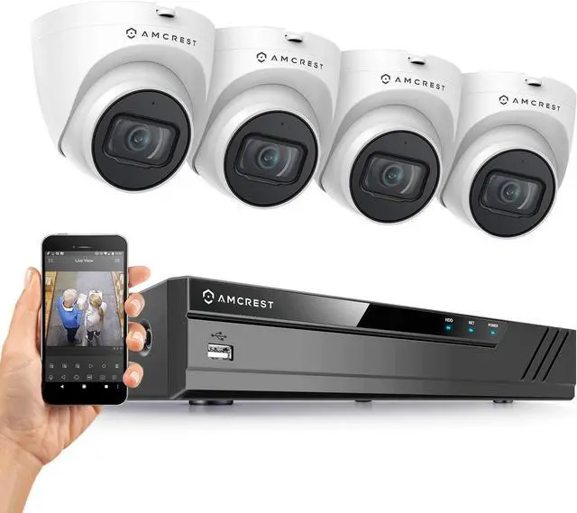 Amcrests NV4108E-HS NVR supports hard drives up to 6 Terabytes while Featuring 8CH Recording, the Latest H.265 Video Compression, 8-Port PoE, and Playback & Live View in Up to 8MP Resolution @ Real-Time 30fps. Includes 4 x 5MP IP PoE Outdoor Turret Cameras (2592x1944) @30fps, each camera comes with built-in microphone. Includes 4 x 60ft Ethernet Cables.