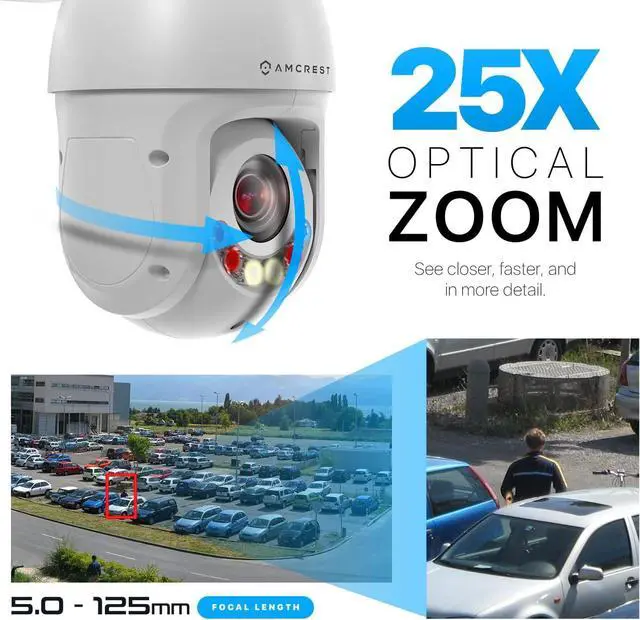 Smarter, Safer, Security - Utilize intelligent alerts that send notifications to your computer or smartphone via the Amcrest View app. Record events on this PTZ POE + camera as soon as they happen and store them on your computer, MicroSD (up to 512GB), NAS, or Amcrest Cloud. This camera requires PoE+ power (802. 3at) in order to operate. Utilize the pan tilt zoom feature with 25x optical motorized zoom and 16x digital zoom as well as continuous 360° pan, 90° tilt capturing every angle.