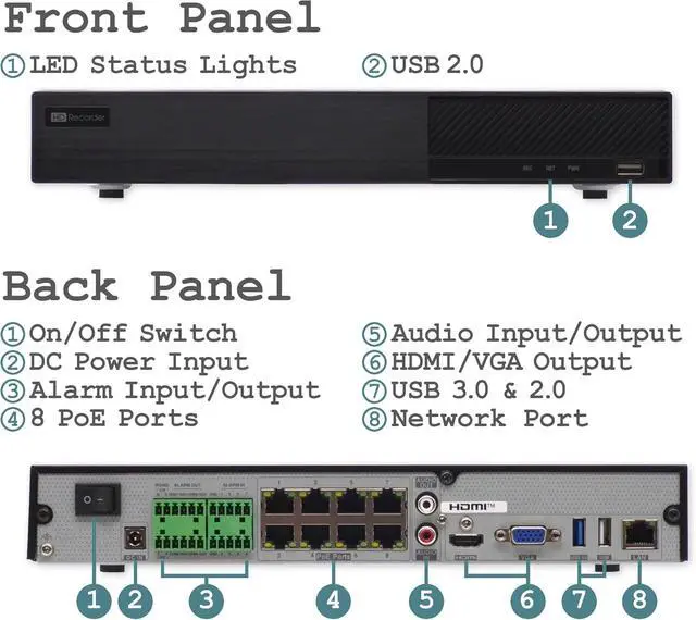 4K RECORDING CAPABILITY: NVR supports up to 12MP (4K) IP cameras with HDMI output up to 4K and VGA output up to 1080p for crystal clear video playback