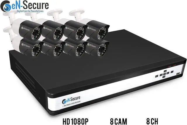 eN-Secure 8 Channel NVR IP Surveillance System, 8 Bullet and 0 Dome 2MP Night Vision indoor/outdoor Full HD 1080P Cameras, No HDD pre-installed, Smart Phone Compatibility.