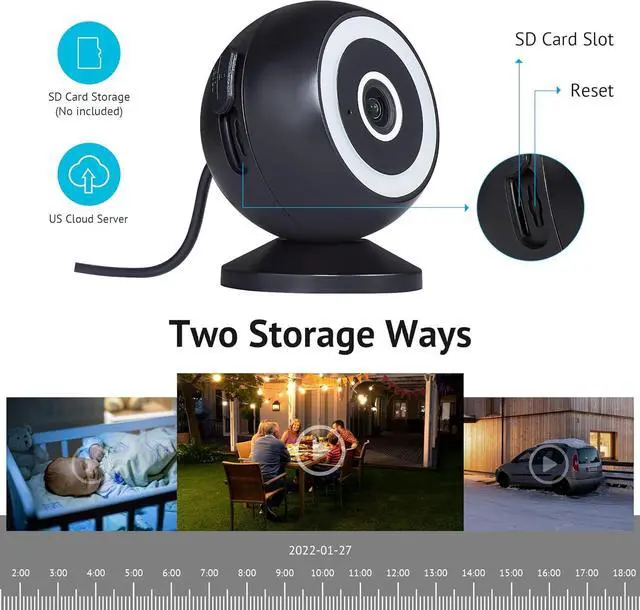 US Cloud Storage & SD Card Storage: The outdoor security cameras support Cloud Storage and a Built-in micro-SD slot. The server is located in the US, the server can avoid the risk of losing video clips, ensure all your videos are safe and protected. The camera support SD card storage (max128GB). Allow you to store day and night 2K color videos