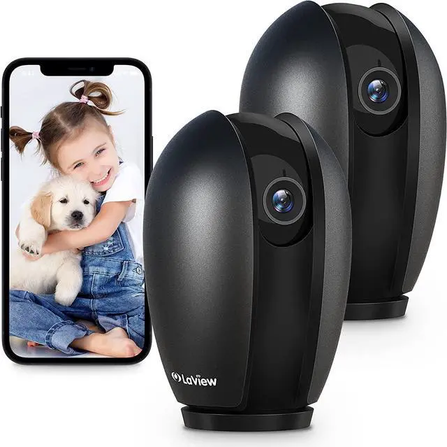 2 Pack 1080P HD Cameras: keeps an eye on your home anytime anywhere using the LaView app; Better Indoor home security that benefit from 360° surveillance; compatible with 2.4G WiFi