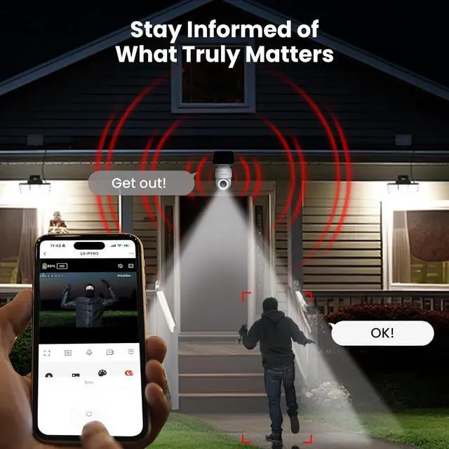 Smart PIR Detection Reduces False Alarms: Equipped with an advanced sensor and intelligent algorithms, this battery camera brings more accurate alerts, and you can set the detection sensitivity and zones for person/vehicle/pet motion to further reduce unwanted alerts.