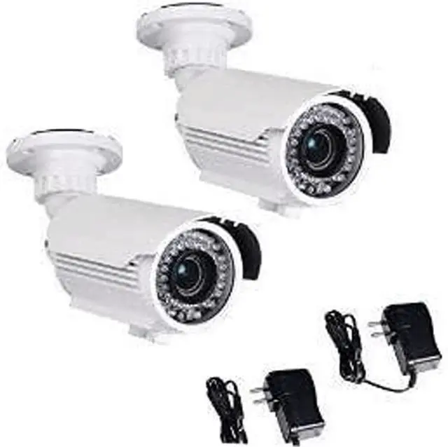Package included: 2 x high resolution cameras, 2 x 12V DC power supplies and 2 x security warning decals