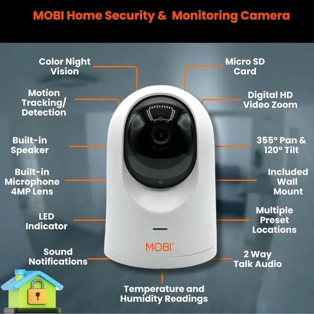 FULL HD WITH PAN & TILT - Experience exceptional home monitoring with our Full HD MOBI Home Security & Monitoring Camera. Effortlessly view the entire room or office with 355° pan and 120° tilt, ensuring you never miss a moment. The wide 110° field of view guarantees comprehensive coverage, giving you peace of mind. Enjoy crystal-clear video quality and the flexibility to monitor your loved ones and property, ensuring their safety and well-being.