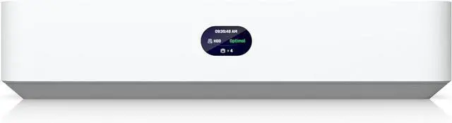 Dimensions : 220 × 220 × 47 mm (8.7 × 8.7 × 1.9") Weight : 1.04 kg (2.3 lb) Managed Cameras : 15 HD, 8 2K, or 6 4K cameras Storage Capacity : 1 × 3.5" HDD bay Networking Interfaces : 1 × GbE uplink, 6 × GbE PoE downlinks, 1 × HDMI PoE Budget : 40W total, 15.4W max per port Processor : Quad-core ARM Cortex-A55 at 1.7 GHz Memory 4 GB Power Supply : AC/DC internal, 60W; Universal AC input 100240VAC Max. Power Consumption : 9W (excluding HDD and PoE budget) Operating Temperature : 0 to 40 °C (32 to 104 °F) Operating Humidity : 5 to 95% noncondensing Applications : UniFi Protect, UniFi Access Compliance : NDAA Compliant, CE, FCC, IC Mounting Options Wall, DIN rail (included)