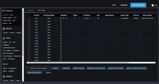 Unleash the power of surveillance with the all-new 16-channel NVR Recorder! The hassle-free setup process is made possible with its built-in power-over-ethernet switch - simply plug in your camera and you're good to go. Keep an eye on your PoE power consumption with ease by simply selecting the PoE Power tab. Experience seamless monitoring like never before with this cutting-edge NVR Recorder.