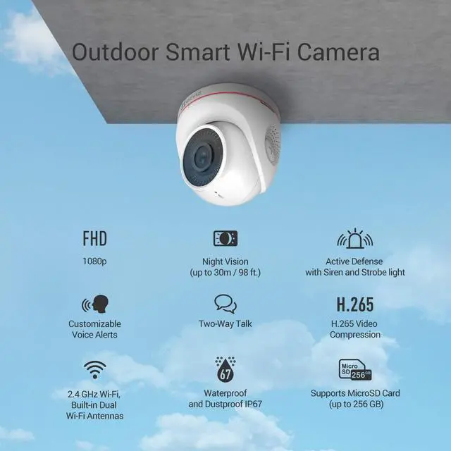 Two-Way Talk & Customizable Voice Alerts: Talk and listen to anyone on the other side at any time through the EZVIZ APP. Recorded voice messages can used in place of the siren as well to greet quests and/or deter unwanted visitors.