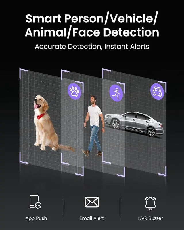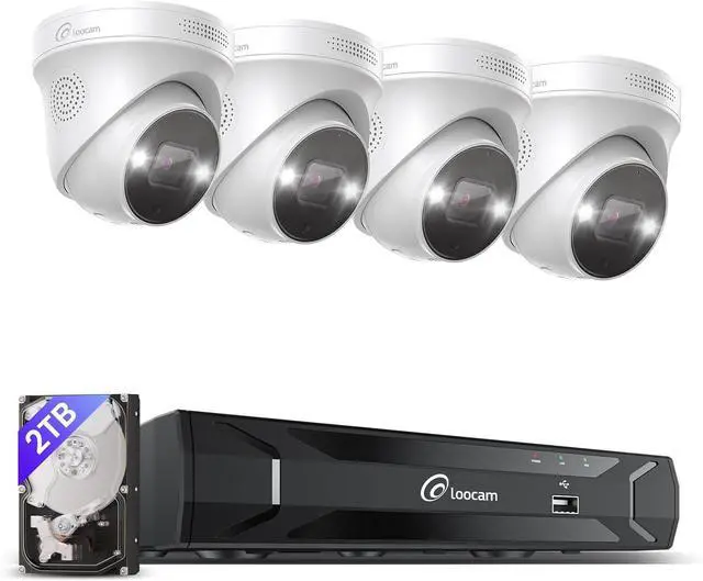 4K Ultra HD & Color Night Vision - This Loocam nvr security camera system delivers sharp 8MP (3840 x 2160) video with 3D Digital Noise Reduction4x clearer than 1080p. The outdoor security camera captures vivid colors and crisp details in daylight, ensuring rich texture in every frame. The color night vision technology enables clear visibility even in low-light conditions.