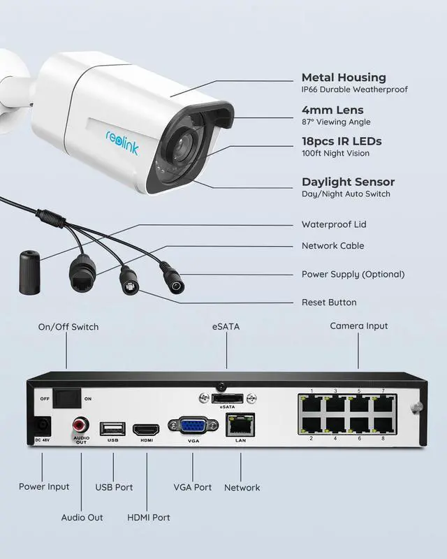 Your 4K PoE cameras can operate efficiently both indoors and outdoors. With IP66 waterproof rating, these cameras can withstand various conditions, such as freezing rain, heavy snow and extreme heat.