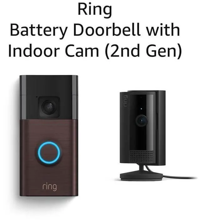 This bundle includes Battery Doorbell and Ring Indoor Cam 2nd Gen (Black).