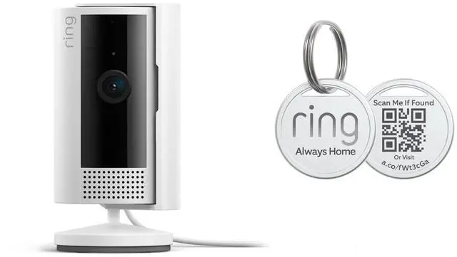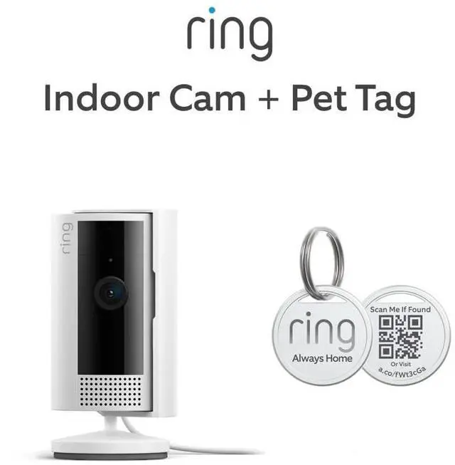 This bundle contains one Ring Indoor Cam (2nd Gen) and one Ring Pet Tag.