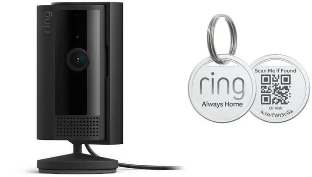This bundle contains one Ring Indoor Cam (2nd Gen) and one Ring Pet Tag.