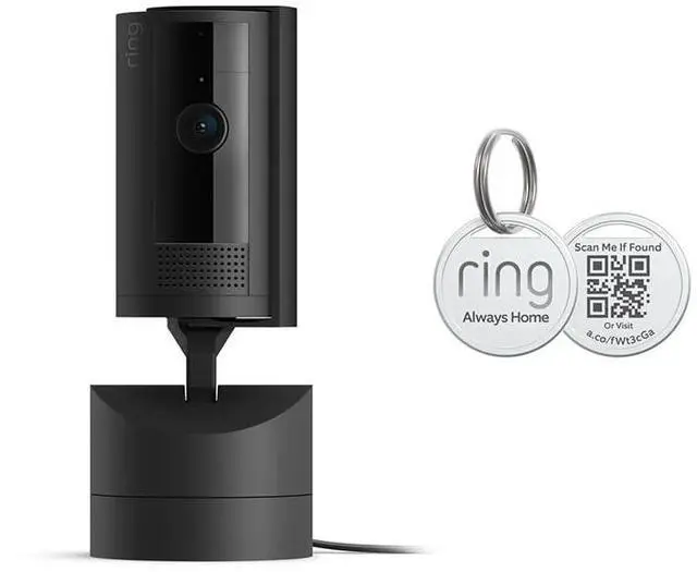 This bundle contains one Ring Pan-Tilt Indoor Cam (Black) and one Ring Pet Tag.