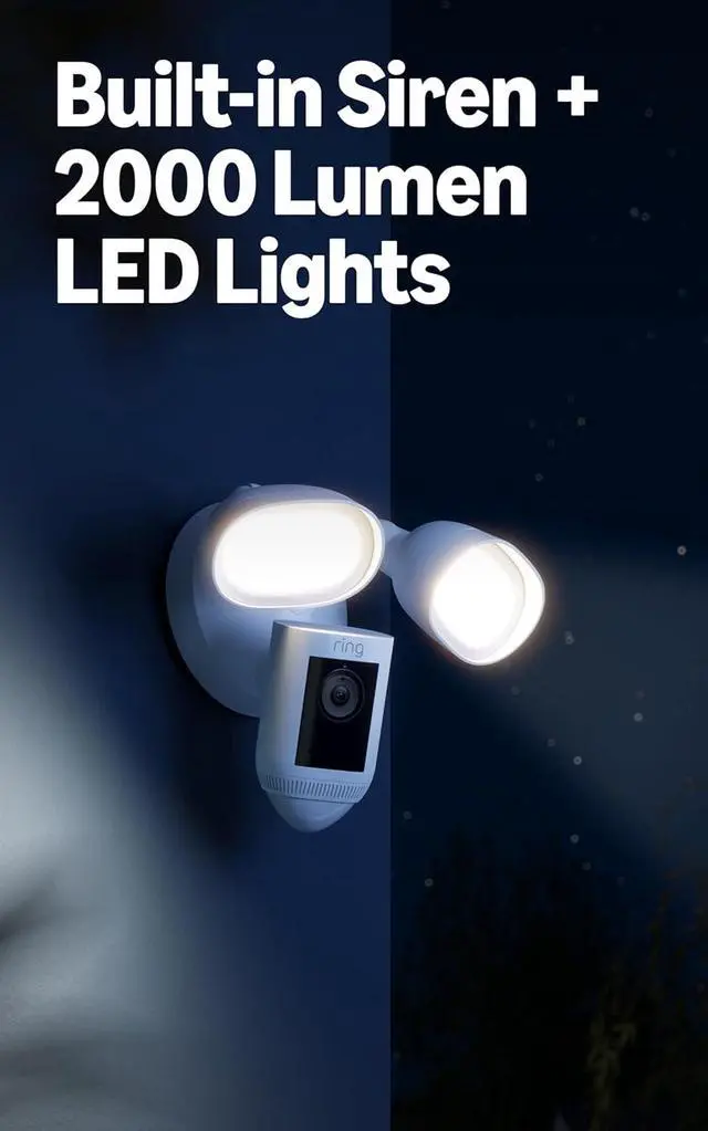 Get pro-level security Security camera with Retinal 2K video, motion-activated LED floodlights, Two-Way Talk and Audio+, 3D Motion Detection, and a built-in 110 dB security siren.