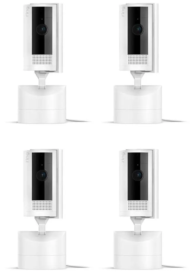 This bundle contains four Ring Pan-Tilt Indoor Cams (White).
