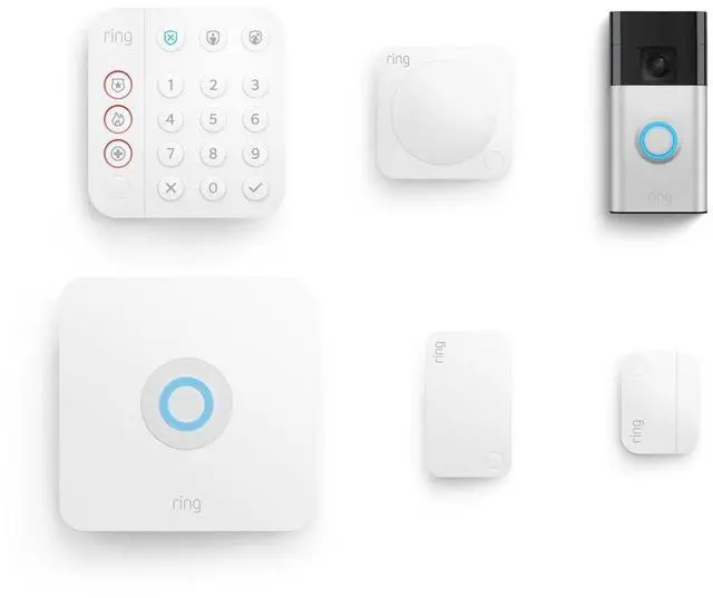 This bundle contains Ring Alarm 5-Piece Kit and Ring Battery Doorbell (Satin Nickel)