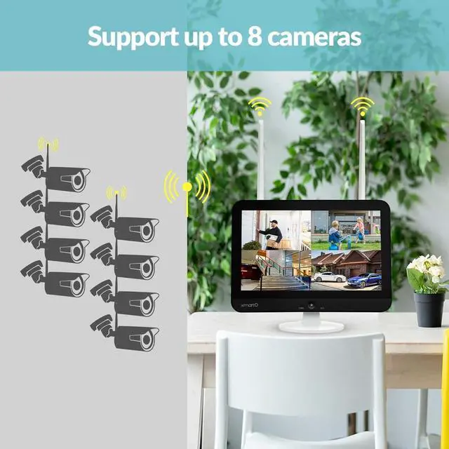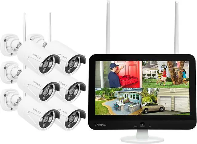 Note: this security camera system does not come in prepacked package. Upon receibving please use the ethernet cable to do match code to pair cameras to the NVR. Please contact support if you have any question. This bundle includes an xmartO 4K Ultral HD Security Network Video Recorder with 12.1" HD Screen and 6 extra Outdoor Add-on WiFi security cameras. The 6 cameras let you monitor 6 outdoor areas or indoor areas simultaneously. The NVR supports any SATA hard drive within 6TB.