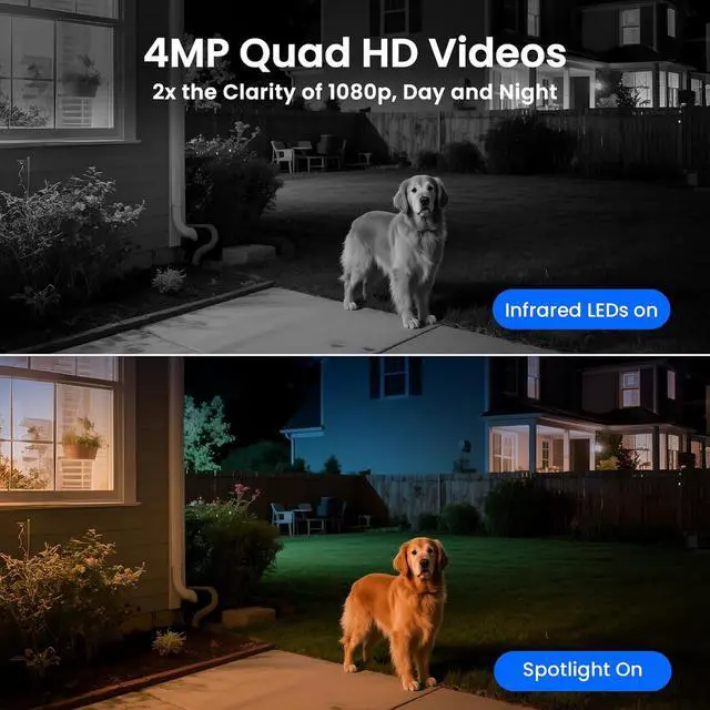 5G/2.4G Dual Band PerformanceWith 5G/ 2.4G dual band WiFi 6, the camera works with cutting-edge WiFi performance. Depending on where you install them, you can choose to connect to 5G WiFi for faster speed, or connect to 2.4G WiFi for longer WiFi distance.