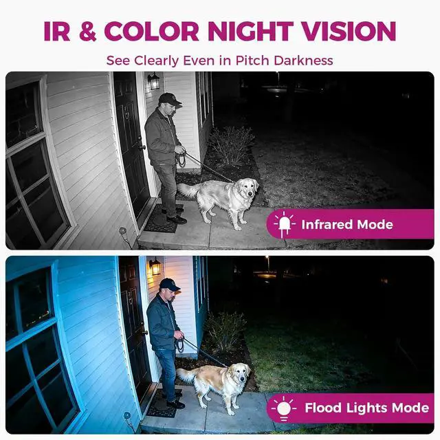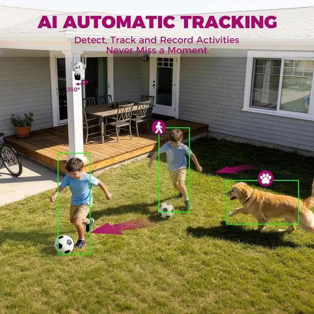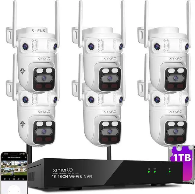 6-Camera Bundle & 3-Lens CoverageBundle includes 1 kit, 2 cams (6 total) & 16CH NVR 1TB, ideal for home/small business. Each cam has 3 lenses (2 fixed+1 PTZ), 180° FOV + 360° cruise to eliminate blind spots. 1080P clarity, IR/floodlights for day/night & color night vision. AI detects humans/animals/vehicles, filters false alerts, auto tracks targets + real-time alerts to deter porch pirates.
