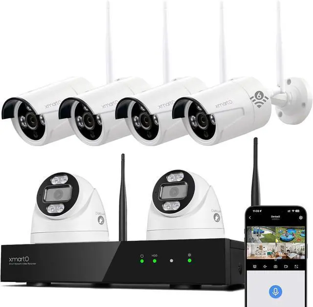 xmartO 10CH 6 Pcs Home Security Camera Kit, 2 * 2K HD Dome Camera and 4 * 2K 3MP Super HD WiFi Home Security Camera, 2-Way Audio, Night Vision, 24/7 Surveillance Camera, No Monthly Fee