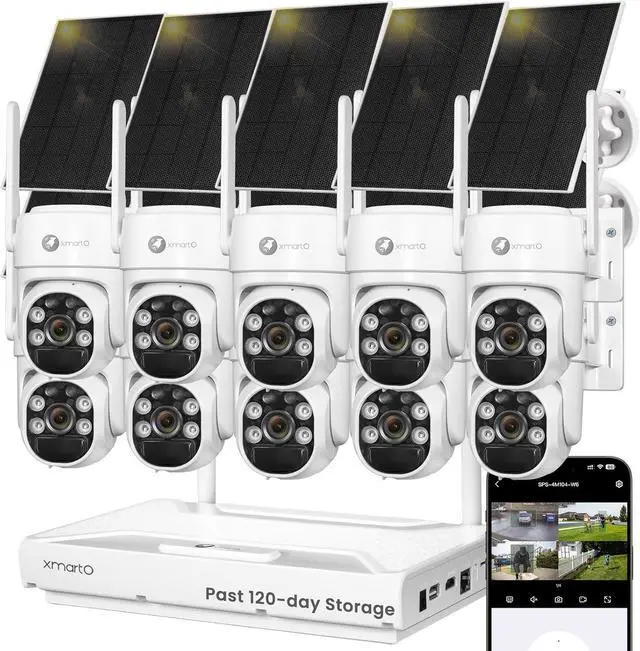 - All 10 cameras share the TESLA-type 8700MAH rechargeable batteries with 120+ days standby without solar replenishment, and XMARTO exclusive All-Weather-Charge technology that recharges batteries daily in rain or snow, so manual charging is seldom needed. Support App-controlled PTZ, AI auto-tracking for people/animals/vehicles, and auto return to preset home points to avoid missing key surveillance areas.
