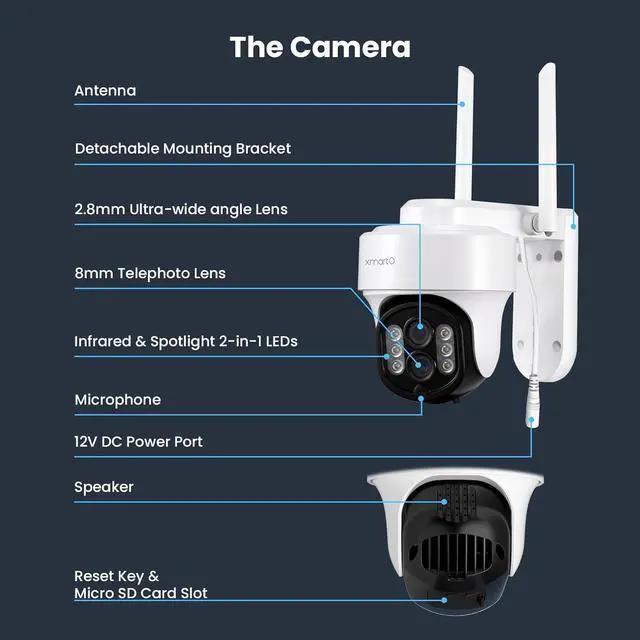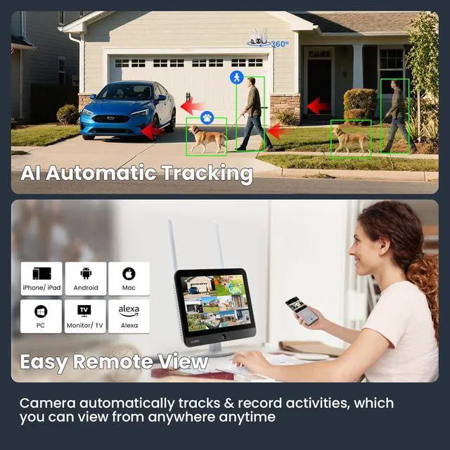 - - The cameras are simply plug them into a power source, and they begin viewing, tracking, and recording activity. AI auto-tracking follows moving people, animals, and vehicles, and cameras can be set to automatically return to a preset home point after tracking to help maintain consistent coverage of key areas around your property. 10X zoom supports both panoramic monitoring and clear close-up details.