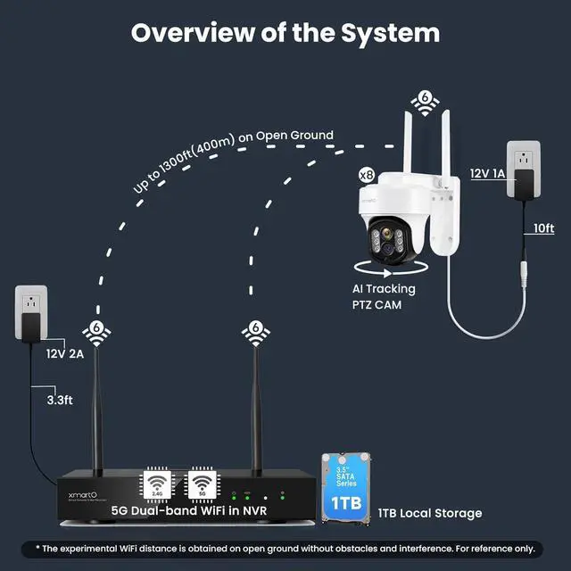 | -- & This 8-camera bundle (4+4 identical cams) is plug-n-play right out of the box. Equipped with 10CH 4K dual-WiFi NVR & built-in 1TB HDD, cameras stream/record 24/7 via dedicated WiFi and work smoothly offline. It delivers stable 1300ft (400m) long-range transmission in open areas, with reliable performance through obstacles.