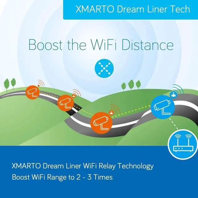 Reliable long range Wi-Fi connection - with built-in Wi-Fi router and two external Wi-Fi antennas, this NVR forms its own strong and stable Wi-Fi to cameras with distance up to 1000ft on open ground, and 200ft with obstacle. Take advantage of dream liner Wi-Fi Relays tech, you get even better Wi-Fi range.