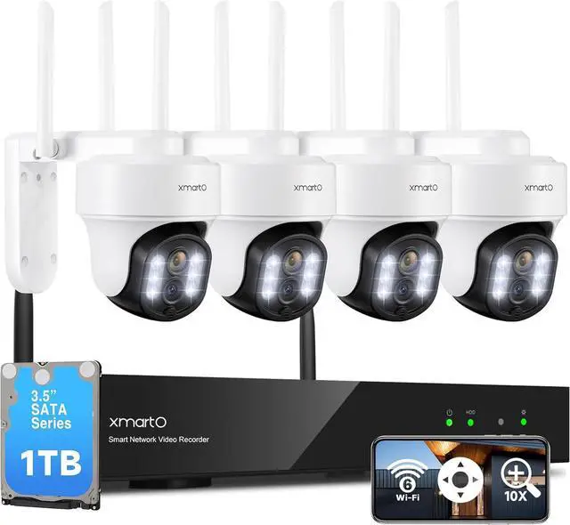 - - 4 x 2K dual lens PTZ cameras feature 10X hybrid zoomthe 10X hybrid zoom lets you zoom in/out 10 times to see distant views or clear close-up details, covering your property 360°. AI auto-tracks people/animals/vehicles and automatically returns to a settable home point after tracking, never missing any passers-by. Simply plug the cameras to power for instant 24/7 surveillance, and effortless to mount on different sides of your property.