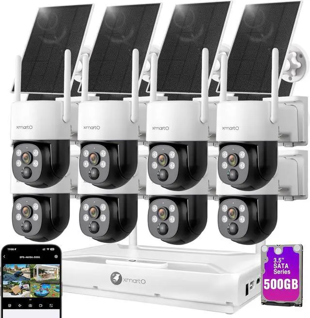-- - This complete bundle includes 1×SPS-4M104-500G (4 solar PTZ cameras + 10CH expandable NVR with 500G HDD) plus 4×BP4-SL solar cameras, totaling 8 wire-free cameras. True plug-and-play setupjust connect the NVR to a monitor and mount cameras with 1 screw per unit. No power or video cables required, friendly for homes, shops and offices. The 10-ch NVR supports expanding up to 10 cameras for fuller coverage.