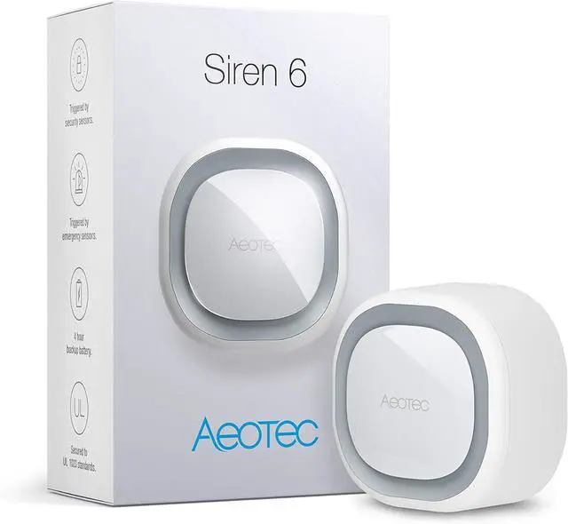 Aeotec Zwave Siren 6 is your home smart indoor siren. Built with Z-Wave Plus S2 to be a smart home security siren, it features a 110dB speaker coupled with 1,000 lumens visual light alert strobe. Can be used as siren for security alarm, smoke sensor, and CO sensors via Z-Wave