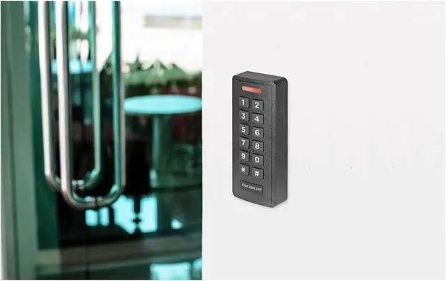 Unlock a door with a user code (4 to 6 digits) or proximity card/keyfob