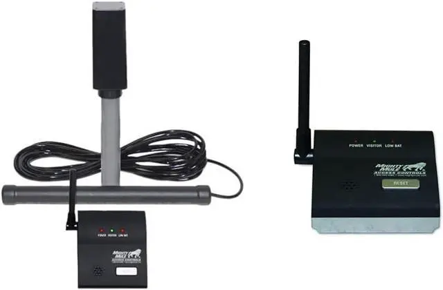 Product 1: When a vehicle passes by the sensor, an outdoor transmitter communicates wirelessly to an internal base station up to 400 ft. away and sounds a pleasant chime