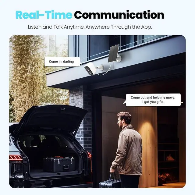 All-Weather Durability & Two-Way Audio Built to withstand harsh weather, this outdoor security camera features an IP66 waterproof rating, ensuring reliable operation through rain, snow, and extreme temperatures. The integrated two-way audio lets you communicate instantly with visitors or warn off unwanted guestsright from your phone.