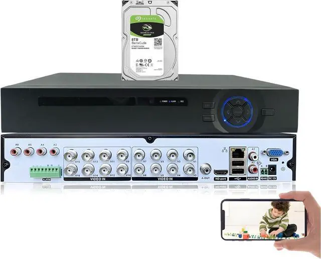 Perfect for your Home, Office, Shop, Business, Restaurant, any indoor and outdoor surveillance applications. 16 Channel DVR which supports HD-TVI, CVI, AHD and Analog Cameras up to 5MP.