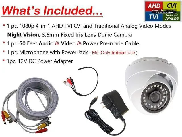 This kit is an ideal add on for any CCTV system which accept AV input and is suitable for Only internal ( Indoor ) use. Compatible with TVI CVI AHD Analog Systems if the TV/DVR has Audio Input. Supports (4) HD Video Outputs: 1080p AHD, 1080p HD-CVI, 1080p HD-TVI, and 1200TVL Analog / CVBS. Factory Default Video Mode is AHD. Video mode must be switched according your DVR type. It is very easy to do with DIP switch.