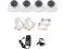 4 Dome Security Cameras with 3000 mA power supply adapter, 4 way splitter, 2 x 50ft and 2 x 100ft Video and Power Cables for Connections