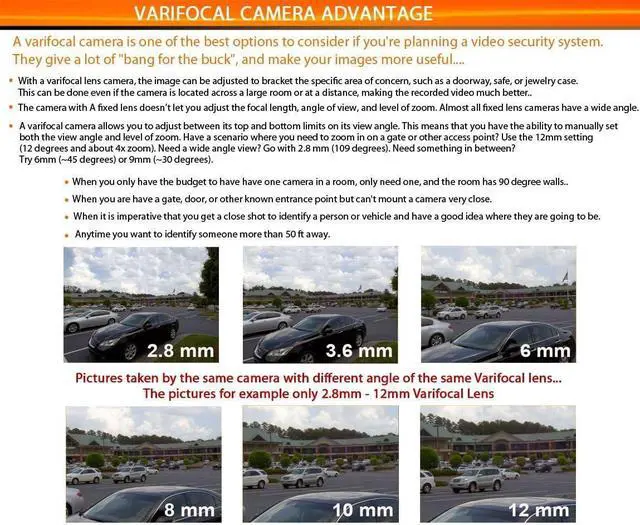 2.8-12mm Varifocal Adjustable Manual Zoom Lens.