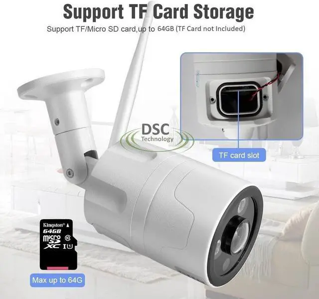 {Multiple Storage Options & Remote Access} With the wifi surveillance camera, which is easier to insert SD card, Built-in 32GB SD Card
