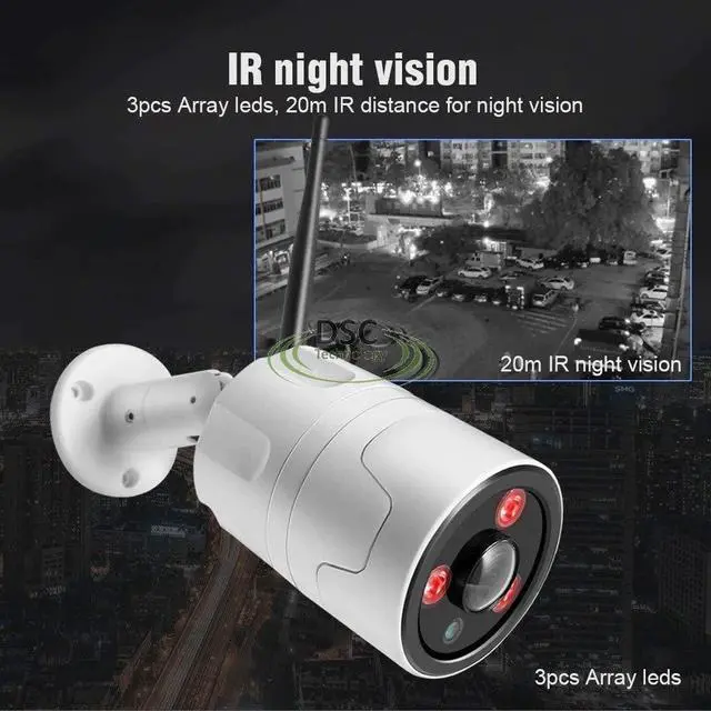 {Two-Way Audio & Motion Detection} With built-in speaker and microphone, this wifi security camera supports two-way audio function, you can enjoy real time talking, view the videos and talk to those on the security camera's side at the same time. With smart detection function, wireless camera can detect the movement, and push the message to your phone when a movement detected, identify potential safety hazards and notify you. {5MP HD & 60FT IR NIGHT VISION} Fisheye Lens(180 Degrees) Wifi security Camera, maximum resolution 2560*1920 offers you clear image quality. Full HD 3pcs Array infrared night vision is clearly visible even at night, supports extend the view distance up to 32-60 feet, and enables you to view super clear images with HD live video streaming, download the app for iPhone & Android, software for Windows to remote this security camera {Multiple Storage Options & Remote Access} With the wifi surveillance camera, which is easier to insert SD card, Built-in 32GB SD Card , Saving captured images/videos to your FTP server is also available. Remote outdoor camera is available for iOS / Android / Windows. Whenever and Wherever you are, you can remote this security camera view live video streaming or video playback, dont worried miss any details. (IP66 Weather-Proof) Wifi outdoor camera build high-quality aluminum alloy case support IP66 waterproof, suitable for -20~+60(-4~+140), which is robust enough to withstand outside tough weather, rain, snow, hot day, etc. This motion security camera is compatible with software Blue Iris, Ispy, Zoneminder, Security Spy, VLC or some other 3rd party software Power Input: PoE/12VDC (power Adapter Not Included)
