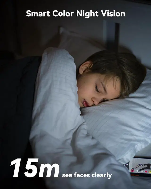 Vivid Color Night Vision & 8X ZoomA total of 8MP dual-lens camera resolution presents you with more realistic and detailed monitoring screen details.The pet camera with a integrated spotlights enable full-color night vision up to 49ft, allowing you to see faces or license plates in vivid detail. Combined with an 8x digital zoom, you can zoom in on your pets or children to see their tiniest expressions. Its not just a security camera but a high-definition window into your home at any hour.